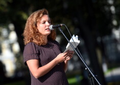 Dzejas lasījumus pie Raiņa pieminekļa klausās aptuveni 200 cilvēki