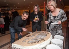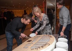 Ar šnicelēm un „semočkām” svin „Trīnes grēku” pirmizrādi. FOTO