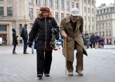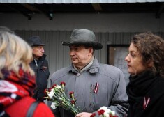 Ždanoka un Zurofs noliek ziedus pie Brīvības pieminekļa