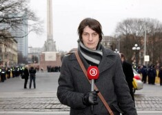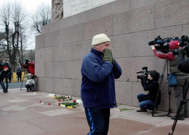 Ždanoka un Zurofs noliek ziedus pie Brīvības pieminekļa