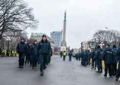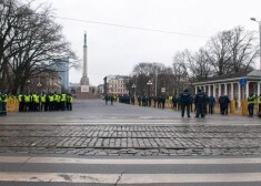 Šorīt pie Brīvības pieminekļa un Vecrīgā izvietoti vairāki simti policistu, novēroja Kasjauns.lv.