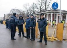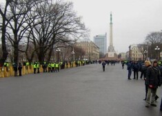 Pie barjerām dežurē daži policisti. Kā iepriekš informēja Zatlers, sabiedrisko kārtību 16.martā nodrošinās 1200 policistu.