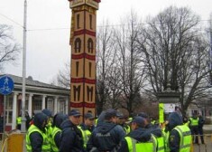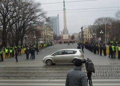 Policisti izvietojušies ķēdē ap Brīvības pieminekli, tomēr cilvēkiem piekļuve pie pieminekļa pagaidām netiek liegta.