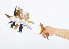„Es pa jaunam ieraugu un spēlējos ar lietām, kas it kā vairs nav domātas man. Izrautas no sadzīviskās vides, rotaļlietas kļūst par apliecinājumu un pierādījumu viseksistenciālākajiem cilvēka stāvokļiem un jautājumiem, ar kuriem dzīve mūs konfrontē jau kopš bērnības,” par savu projektu stāsta māksliniece.