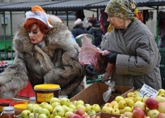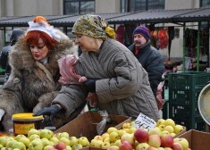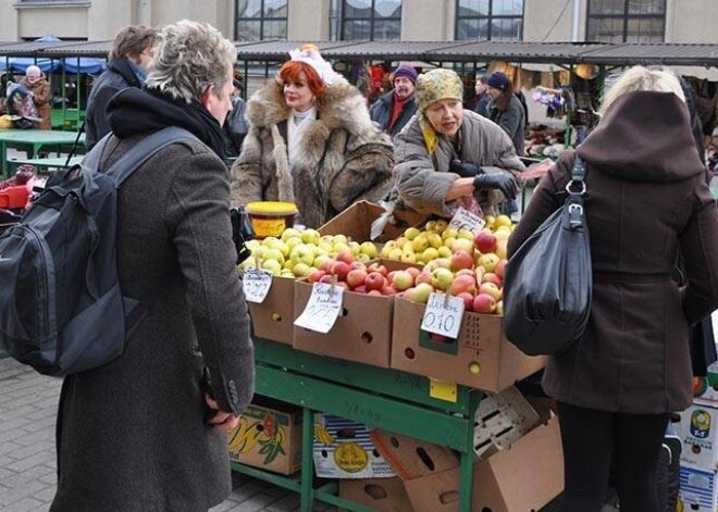 Martinsone un Ozoliņa Centrāltirgū tirgojas ar āboliem. FOTO