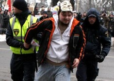 Aizturētais cilvēks bija "Anonymous" maskā. Šādas maskas izmantoja arī citu Eiropas valstu protestētāji (Gaja Foksa maska, kas aizgūta no filmas un komiksu grāmatas "V for Vendetta" un kuru izmanto hakeru grupas "Anonymous" dalībnieki).