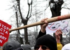 Ik pa laikam sākas stihiska skandināšana "Nost ar ACTA!".