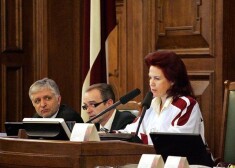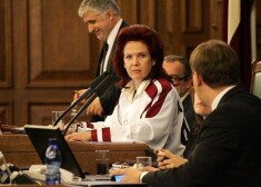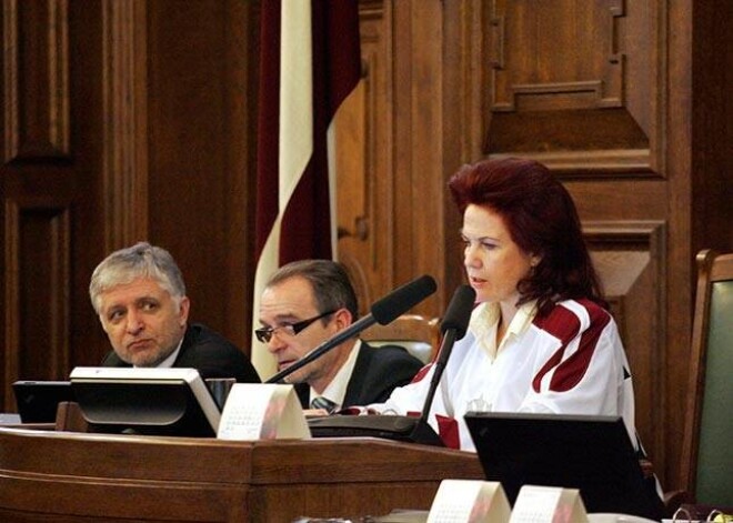 Āboltiņa Saeimas sēdi vada hokeja izlases kreklā