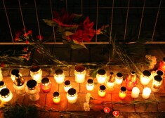 Piemiņas brīdis Zolitūdes traģēdijas vietā 2015. gada 21. novembrī
