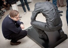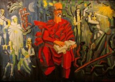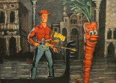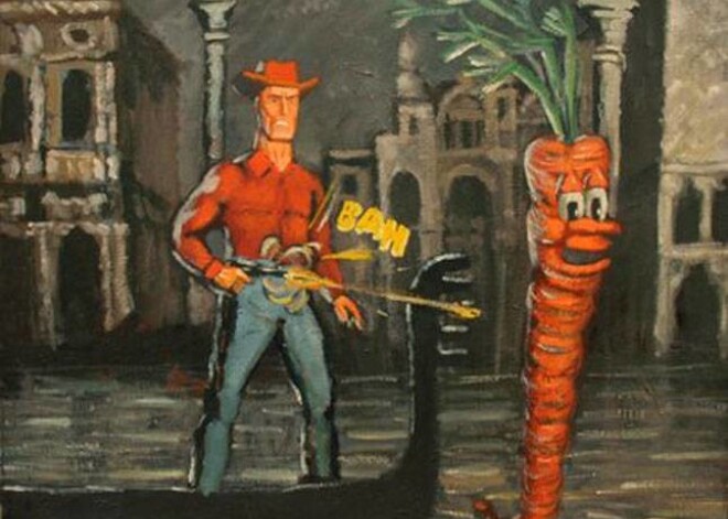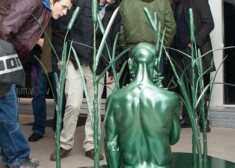 Par Ernesta Kļaviņa izstādi „Karš starp titāniem un rūķīšiem”, kas novembrī norisinājās galerijā „Alma” mākslas zinātniece Inese Baranovska teic: