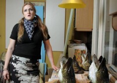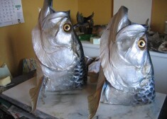 Zivju izbāzeņus Sarmīte Inberga–Petrovska veido jau četrus gadus, par darbnīcu kalpo virtuve viņas ģimenes privātmājā Siguldā — tuvinieki ir apraduši, ka, ieejot virtuvē uzvārīt kafiju, uz viņiem noraugās pat piecas līdaku galvas.