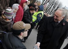 Noslēdzoties parādei, Valsts prezidents devās aprunāties ar iedzīvotājiem, kas bija atnākuši parādi noskatīties klātienē.