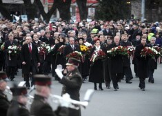 Valsts prezidenta Andra Bērziņa un citu amatpersonu dalība ziedu nolikšanas ceremonijā pie Brīvības pieminekļa izraisīja plašu rīdzinieku un pilsētas viesu interesei, novēroja aģentūra LETA.