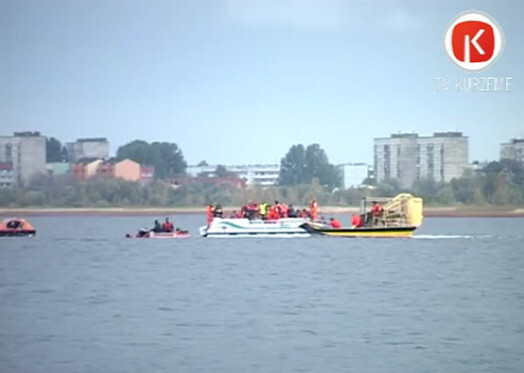 Katastrofas imitācija un glābšanas mācības Liepājas ezerā (TV Kurzeme)