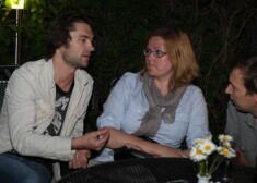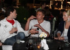 Dailes teātra terases vasaras sezonas atklāšanas ballītē, kamēr citi viesi klausījās muzikālos priekšnesumus, aktieri Ivars Auziņš un Dainis Grūbe pēc garās ziemas sezonas ieskatījās viens otra maciņā, lai saskaitītu, kuram lielāks honorārs.