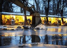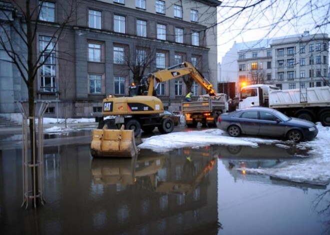 Tērbatas ielā pie Ministru kabineta ēkas plīsis ūdensvads.