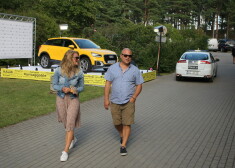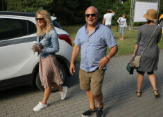 Restorānu īpašnieks Elmārs Tannis ar pavadoni Andru Stiebru festivālā “Positivus 2016”.
