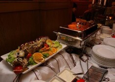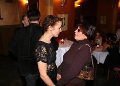 Jau vēlāk, kad aktieri bija uzklausījuši oficiālās runas un komplimentus, izrādes veidotāji un varoņi devās uz aktieru kafejnīcu, kur notika vakarēšana ar šņabi, siļķu maizītēm, pankūkām, pildītu zivi un soļanku krievu stilā.