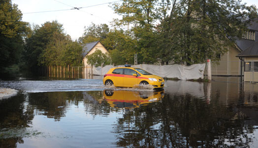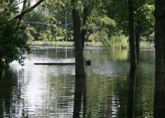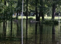 Aizpagājušajā naktī ūdens līmenis pārplūdušajā Mārupītē ir cēlies vēl par 20 centimetriem, un tramvaja sliedes klāja 40 centimetrus bieza ūdens kārta.