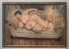Freids gleznā attēlojis mollīgo Sjū Tipiju, kura kaila guļ uz dīvāna.