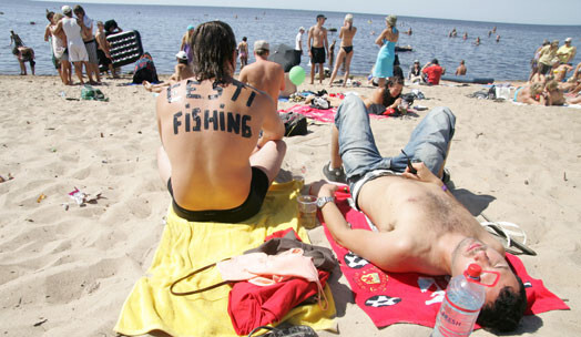 Jau no agra rīta "Positivus" festivāla apmeklētāji pulcējās pludmalē, kur laiku pavadīja, ne tikai sauļojoties, bet arī aktīvi atpūšoties.