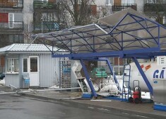 Kravas auto ietriecas gāzes uzpildes stacijā