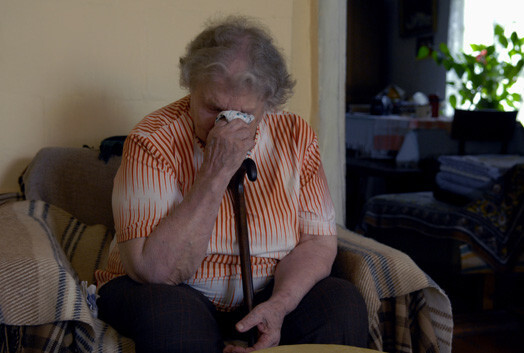 Reiz mūs aplaupīja. Šķiet, biju saņēmusi Spīdolas balvu... Vai arī nē, pavisam kādu nieku. Par Nopūtām, 300 latu, malkas naudu. Ienāca laupītājs un sāka mani sist! Zvelēja nost. Kaut kā noturējos pretim. Asinis šķīda pa grīdu. Saucu: sakiet taču beidzot, ko jums vajag, ko te kaujaties! Viņš: naudu vajagot. Saku: tā būtu arī teikuši. (Smejas.) Pieeju pie skapja, tur māsas somiņā stāv nauda, nolieku uz galda, kur tāpat kā tagad stāv mazā grāmatiņa un uz tās – rožukronis. Viņš nobijās no tā un uzmanīgi, uzmanīgi, lai tik nepiedurtos, žākarē to naudu laukā. Saka: 300 latu par maz. Magdalēna saka: dod viņam tos divlatniekus, kas manā makā. Viņai tur bija kādi piecpadsmit vai sešpadsmit gabali sakrāti. Labi, izberu tos divlatniekus arī. Viņš skaita, māsa saka: nu, atstāj taču man pašai arī, ko zāles nopirkt. Divus atstāja. Skatījos uz viņu un teicu: lai Dievs tevi sargā, cilvēk! Lai Dievs tevi sargā! Bet nebija sargājis... Nebija nosargājis. Viņš Balvu rajonā bija aplaupījis citu tanti – tikai 17 latiņu atradis un gandrīz nositis pie miršanas. Bet man, redz, nolaimējās. Kad viņš aizgāja, visa biju asinīs notecējusi. Atskrēja mūsu apgādniece, izsauca ātro palīdzību, tā aizrāva mani, piecās vietās galvā šuves salika. Labi cilvēki pa to laiku pasēdēja, lai māsai nebūtu bailes. Nu, nekas jau nenotika.
