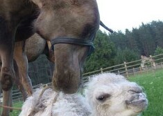 Radio Skonto balss Valdis Melderis, strādādams Cēsu saimniecībā, sagaidījis pasaulē nākam pirmo „Rakšu” kamielēnu un kļuvis par viņa krusttēvu.