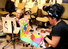 Visrūpīgāk gleznošanai bija sagatavojusies Elita Patmalniece. Viņa ieradās ar smalki izzīmētām skicēm. Krēslu viņa bija iecerējusi darināt melnbaltu, filigrāniem ornamentiem rotātu. Arī pati apģērbusies pieskaņoti savām iecerēm – melnbaltā apģērbā, kuru gan apgleznojusi, gan darinājusi pati. Arī otra māksliniece – Vija Zariņa ieradās melnbaltā tērpā un solījās krēslu apgleznot, par pamatu ņemot melno un balto krāsu. Konkrētu ieceru un skiču pirms darba viņai nebija – tās radās darba gaitā. Glītā uzvalciņā saposies, pasākumu apmeklēja arī Vijas Zariņas dzīvesbiedrs Kristaps.