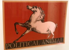 Rīgas vēstures un kuģniecības muzeja Kolonnu zālē līdz 6. septembrim skatāmi Jura Dimitera plakāti izstādē „Political Animal. Politiskais dzīvnieks”, kurā mākslinieks izvirza šodienas aktuālo sabiedrības norišu interpretējumu.