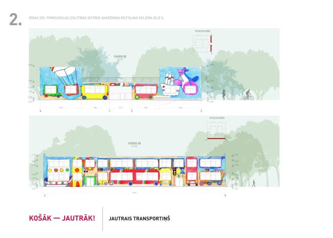 Šos darbus šogad realizēs uz 19 Rīgas izglītības iestāžu fasādēm, kurām pēc Rīgas domes Īpašuma departamenta pasūtījuma tiks veikti ēkas energoefektivitātes uzlabošanas pasākumi: Rīgas pirmsskolas izglītības iestāde “Māra” Zebiekstes ielā 1, Rīgas 266. pirmsskolas izglītības iestāde Pļavnieku ielā 4, Rīgas 259. pirmsskolas izglītības iestāde Jāņa Grestes ielā 3, Rīgas 270. pirmsskolas izglītības iestāde Salnas ielā 18, Rīgas 234. pirmsskolas izglītības iestāde Kurzemes prospektā 86C, Rīgas pirmsskolas izglītības iestāde “Dzirnaviņas” Tālavas gatvē 7, Rīgas 46. pirmsskolas izglītības iestāde Vecumnieku ielā 5A, Rīgas 80. pirmsskolas izglītības iestāde Garajā ielā 24, Rīgas pirmsskolas izglītības iestāde “Kadiķītis” Garajā ielā 31, Rīgas 154.pirmsskolas izglītības iestāde Andromedas gatvē 3, Rīgas 220. pirmsskolas izglītības iestāde Aglonas ielā 4A, Rīgas pirmsskolas iestāde “Annele” Anniņmuižas bulvārī 78, Rīgas 261. pirmsskolas izglītības iestāde Jaunrozes ielā 12, Rīgas 243. pirmsskolas izglītības iestāde Saktas ielā 3A, Rīgas 224.pirsmsskolas izglītības iestāde Prūšu ielā 82, Rīgas 197.pimrsskolas izglītības iestāde Birzes ielā 44, Rīgas 255.pirmsskolas izglītības iestāde Akadēmiķa M.Keldiša ielā 5, Rīgas 25.vidusskola Rušonu ielā 6.