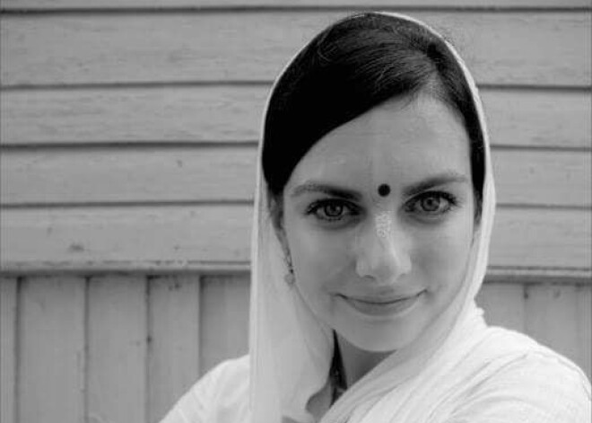Fotogrāfijā redzamā meitene ir Erna. Meitenes seju rotā hinduistu simbols tilaka.