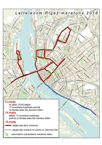 Sakarā ar Lattelecom Rīgas maratona norisi, sestdien un svētdien, 14. un 15. maijā pilsētā gaidāmi ievērojami satiksmes ierobežojumi, tostarp jau no 13. maija vakara transportlīdzekļiem būs slēgta 11. novembra krastmala. Rīgas dome aicina iedzīvotājus ar izpratni attiekties pret nepieciešamajiem satiksmes ierobežojumiem un nedēļas nogalē laicīgi plānot savus pārvietošanās maršrutus pilsētas centrā.
