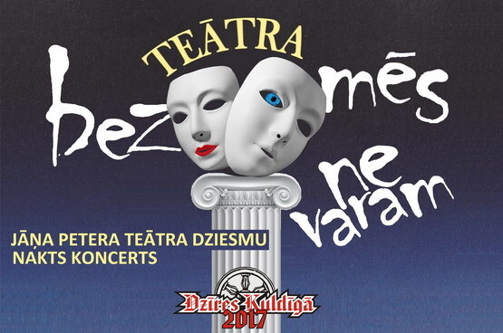 Jau šonedēļ Kuldīgā notiks vērienīgais pilsētas festivāls „Dzīres Kuldīgā”. Par četru dienu ilgo svētku kulmināciju kļūs grandiozais piektdienas nakts koncertuzvedums “BEZ TEĀTRA MĒS NEVARAM...” , kad 14. jūlijā 22:00 Kuldīgas estrādē izskanēs tautā iemīļotas teātra dziesmas ar dzejnieka JĀŅA PETERA dzeju Latvijā populāru mūziķu sniegumā.