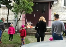 Pieminot mirušo puisēnu, pie viņa dzīvesvietas pulcējas cilvēki, noliekot svecītes.
