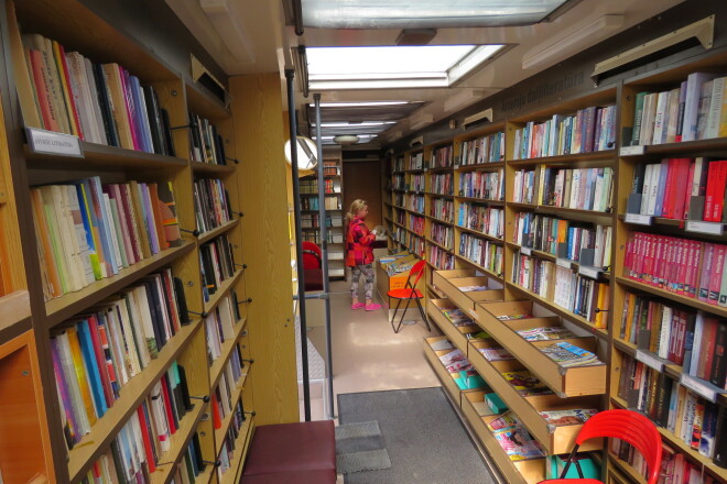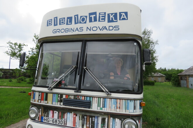 Aptuveni 400 Grobiņas novada iedzīvotāju grāmatas un žurnālus saņem, pateicoties bibliobusam – autobusā iekārtotā bibliotēkā. Latvijā ir tikai divi bibliobusi, un Grobiņā to vada divas dāmas – Laima Liepiņa un Rita Vidēja. Biobliobusa apmeklējums te ļaudīm nav tikai vienkārši grāmatu apmaiņa, tā ir iespēja satikt savējos, parunāties, iedzert tēju. Trešdienas jeb īsajā maršrutā pievienojās arī Kas Jauns Avīze.