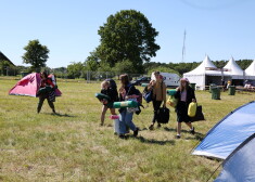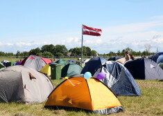 Festivāla "Positivus" apmeklētāji ierodas telšu pilsētiņā