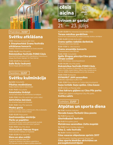 Ar pilnu svētku programmu aicinām iepazīties Cēsu novada pašvaldības mājas lapā www.cesis.lv.