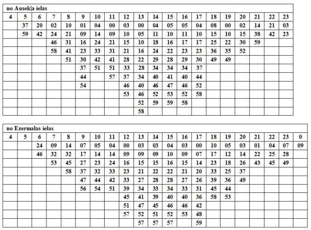 No Abrenes ielas uz Ulbroku plkst. 23.55 0.40 1.20 2.00