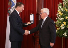 Vējonis svinīgā ceremonijā pasniedza Triju Zvaigžņu ordeni, Viestura ordeni un Atzinības krustu.