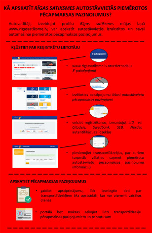 Infografika: Kā apskatīt "Rīgas satiksmes" autostāvvietās piemērotos pēcapmaksas paziņojumus?