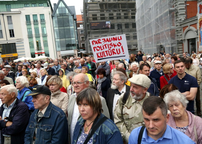 Nebaro oligarhu! Tautas sapulcē Rātslaukumā ierodas vairāki simti cilvēku
