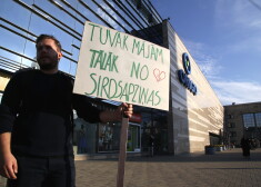 Piketā pie "Rimi Galerija Centrs" aicinās tirgotāju atteikties no sprostos dētu olu tirdzniecības.