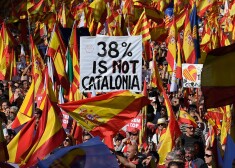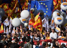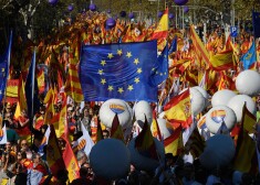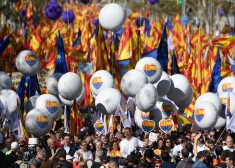 Simtiem tūkstoši cilvēku Barselonā pauž atbalstu Katalonijas vienotībai ar Spāniju