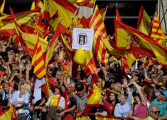 Cilvēki Barselonas ielās līksmo par Katalonijas neatkarības pasludināšanu