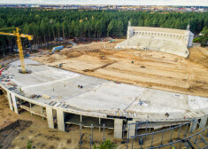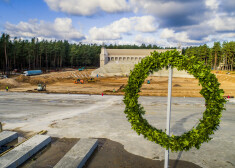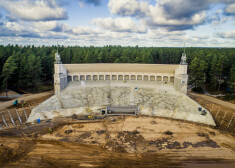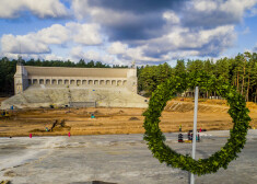 Virs Mežaparka Lielās estrādes pacelts spāru vainags