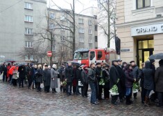 Cilvēki atvadās no "Maximas" traģēdijā bojā gājušajiem Valsts ugunsdzēsības un glābšanas dienesta darbiniekiem