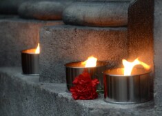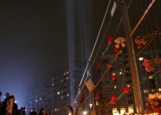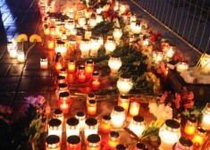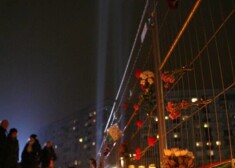 Spilgta svecīšu siena "Maximas" gruvešu vietā. Cilvēki piemin bojāgājušos