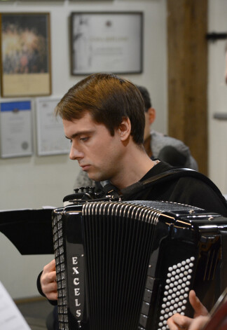 klavieres, kontrabasu, akordeonu, vijoli, klarneti, perkusijas u.c.