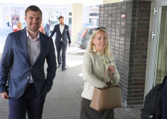 Cilvēki dodas uz "Turaidas Rozes" pirmizrādi Latvijas Nacionālajā operā
